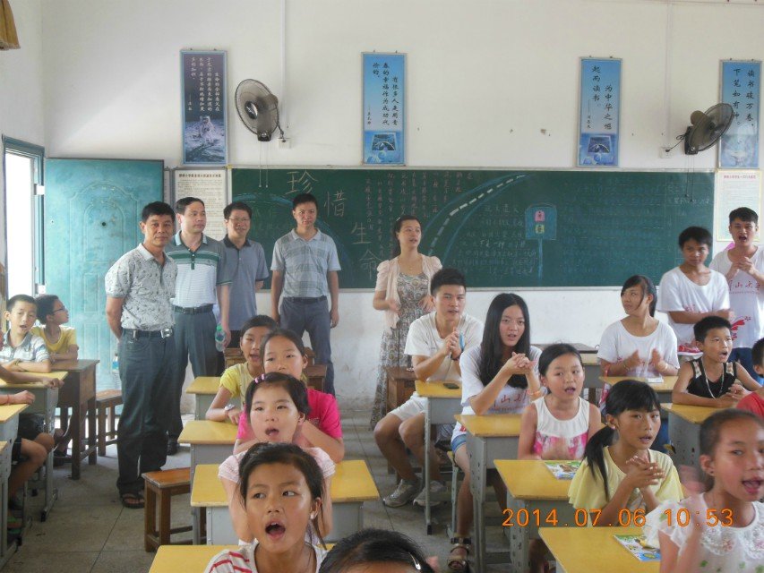 在带队老师的引领下,学院领导认真地巡查了校园,参观了志愿者们的宿舍。随后,学院领导鼓励志愿者们要克服一切困难,发扬能吃苦、愿意吃苦的革命精神。领导们还来到了志愿者们教学的课堂上,询问教学状况和质量,得到当地小学生们的一致肯定。小学生们说:“大哥哥、大姐姐们不仅教我们知识,还教我们唱歌跳舞,和他们在一起特别开心,希望明年还能见到他们。”