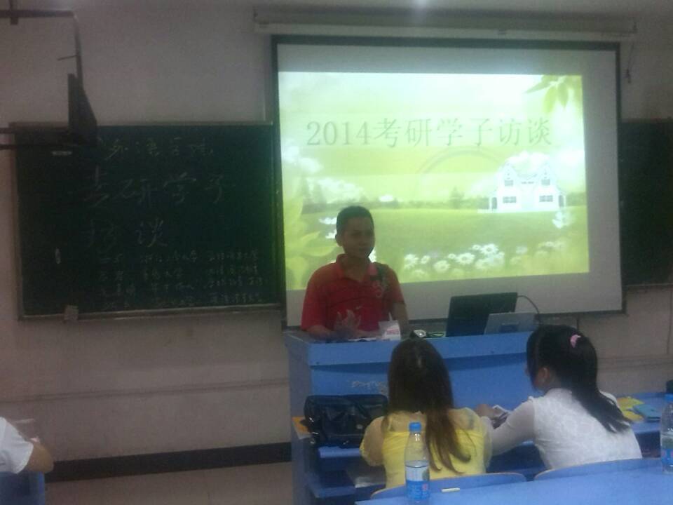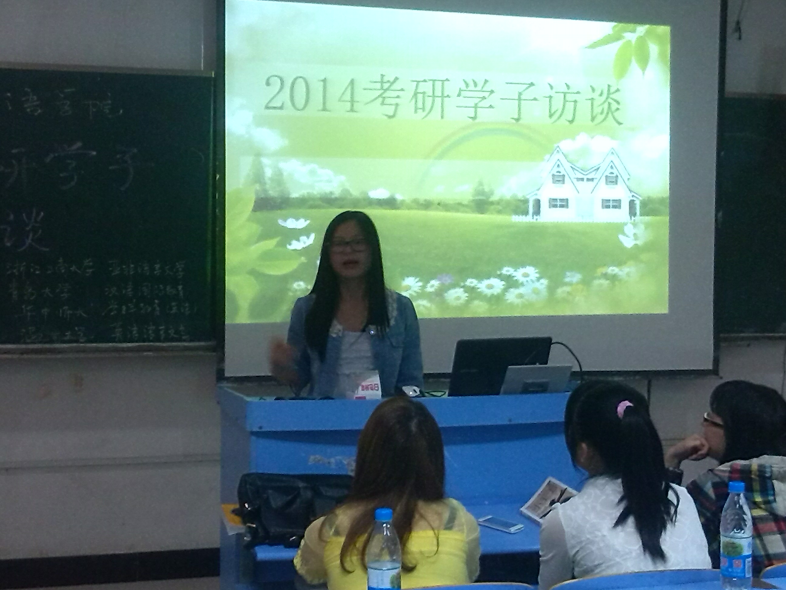 本次考研学子访谈吸引了我院200多名有志于考研的学生参加,并邀请到了成功考取研究生的10级学长、学姐与我们进行考研经验交流。首先,全体学生观看了学院历届具有代表性的成功考研学长学姐的感想和对学弟学妹们的祝福。康旭平针对如何准备考研给在场的学生提出了几点建议,一要有足够的信心,用功学习,提早做准备;二要根据实际情况,放低心态,坚定目标,坚持不懈;三要掌握方法,做好学习计划安排。随后,在与10级学长学姐的互动中,本次访谈的气氛达到了高潮。