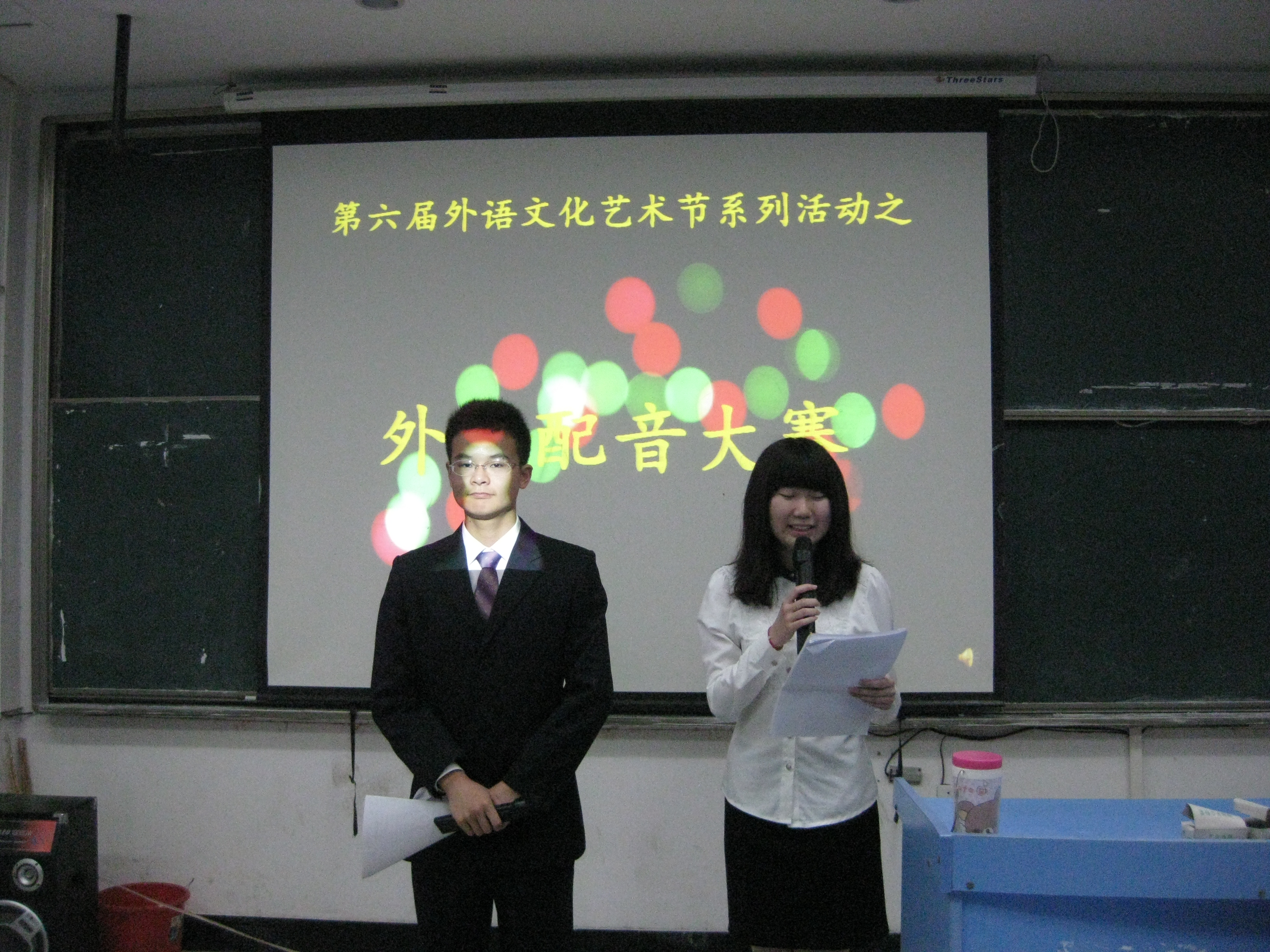 5月19日晚7:00,外国语学院在九栋309教室举行第六届外国语文化节之外文配音大赛决赛。参加此次决赛的是从初赛中脱颖而出的12组选手。担任比赛评委有学院公共外语教学部王珍珠、年级辅导员郭检生、周溪。