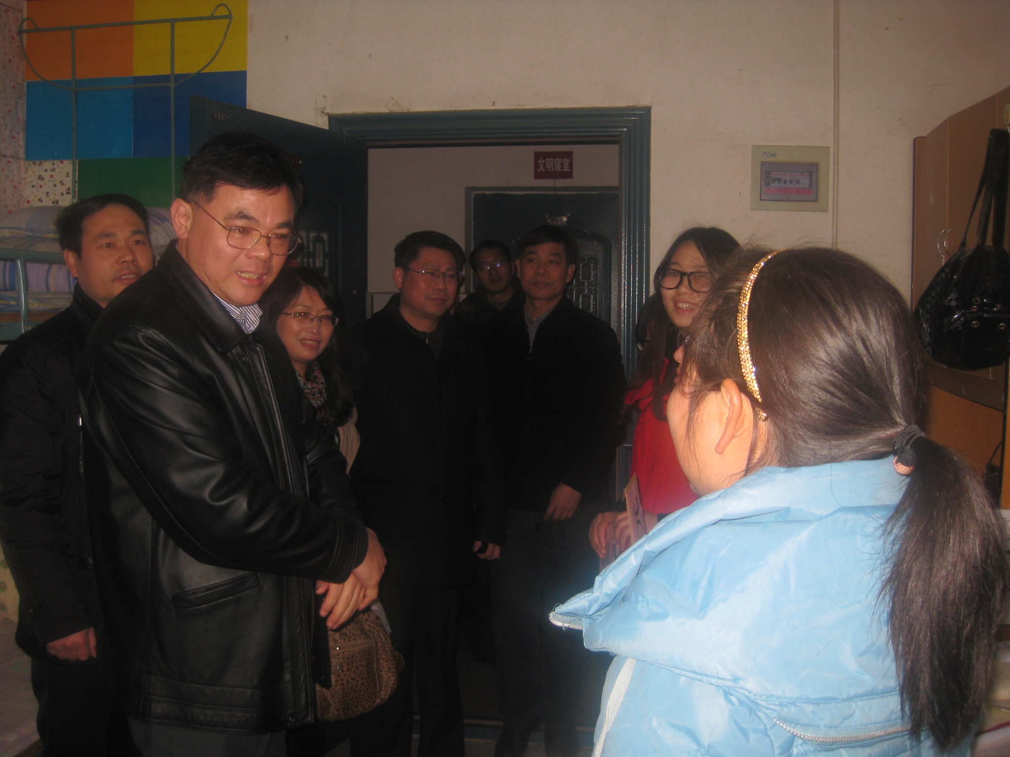 1月14日校党委委员、副校长桂国庆在校学生工作处、招生就业指导处、后勤集团等相关职能部门负责人的陪同下,来到学生宿舍24栋117宿舍走访慰问我院贫特困生代表。学院党委书记马于强、副书记张清华和团委学生科工作人员到场迎接。