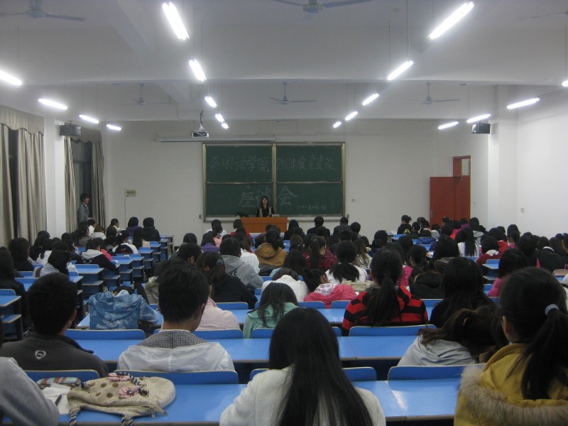 为积极配合学校开展“文明寝室”创建工作,进一步加强寝室建设,创建和谐寝室,树立良好学习氛围,外国语学院于11月20日晚在11栋B区104隆重举行“外国语学院2011年寝室建设座谈会”。团委书记、学生科科长梁景宏,团委副书记、学生科副科长林君,09级辅导员周溪、10级辅导员王梅、11级辅导员郭检生和各栋长、层长、寝室长及各班班长共达260余人参加了本次座谈会。获得“六好寝室” 代表在会上作了经验交流。