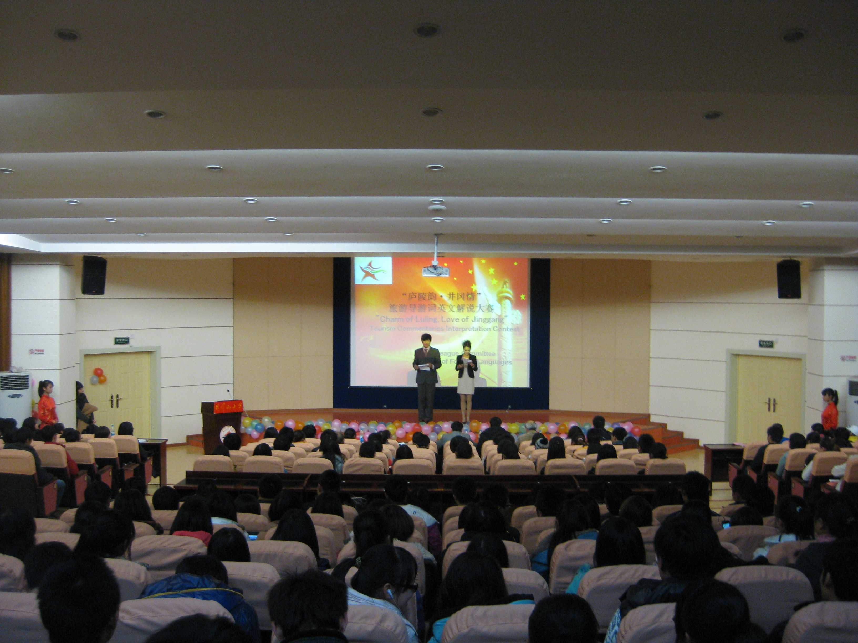 12月7日晚,由校团委主办,外国语学院团委承办的“庐陵韵·井冈情”旅游导游词英文解说大赛决赛在10栋学术报告厅举行。校团委副书记习军明,外国语学院党委副书记张清华、副院长陈小曼出席了比赛。全校近200名师生观看了比赛。