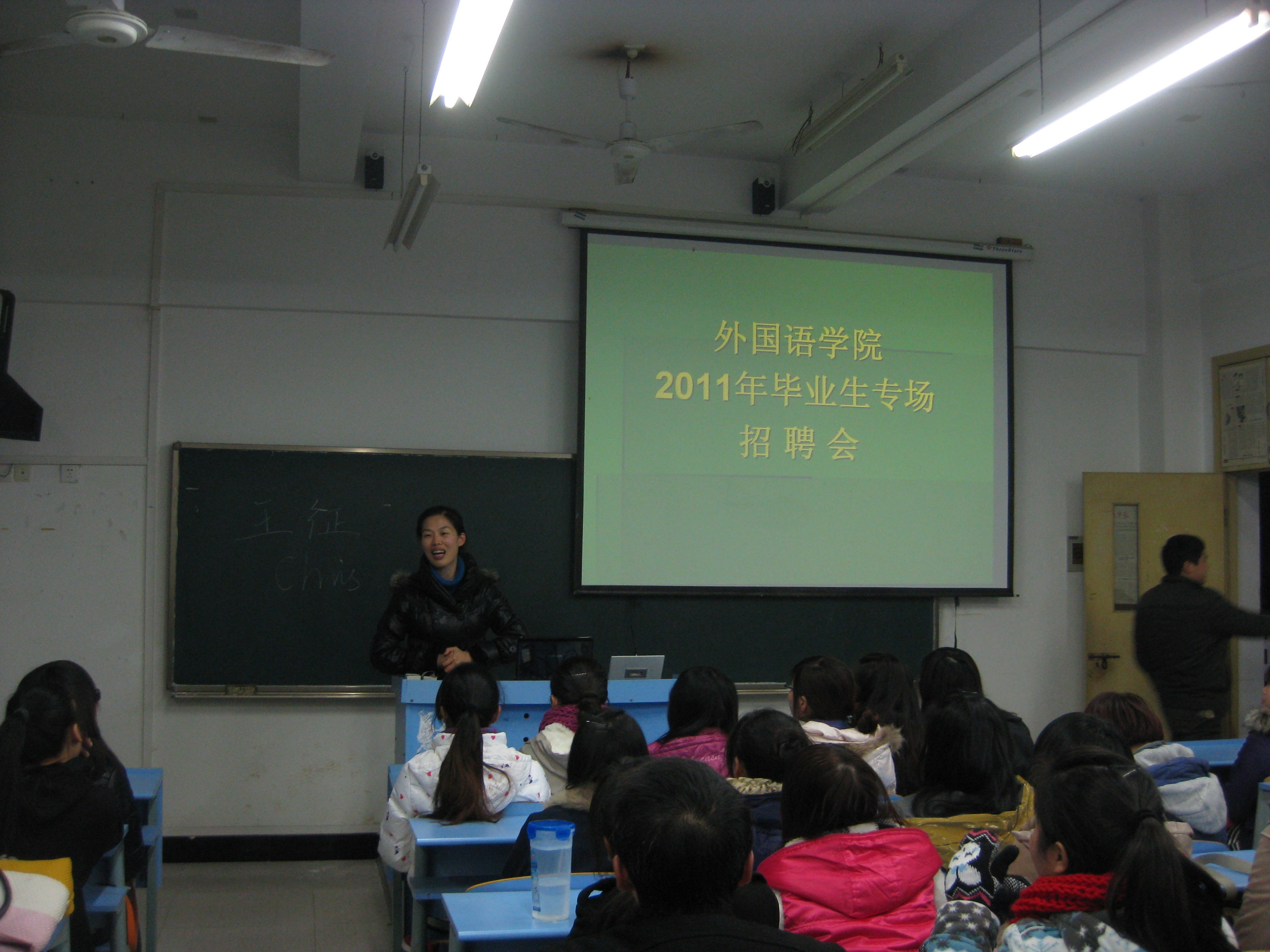 [复制]外国语学院召开四场2012届毕业生专场招聘会 2011年12月26日 团学活动 12月9日、12月11日、12月14日、12月22日,外国语学院召开了四场2012届毕业生专场招聘会,招聘会分别邀请到了碧桂园集团广州市凤凰城酒店、深圳市的新舟文化发展有限公司、永丰县远航文化教育培训中心、中国旅游信息网等用人单位来我院选用毕业生。百余名我院毕业生参加了专场招聘会。用人单位来我院招聘英语专业和日语专业毕业生。专场招聘会现场气氛良好,毕业生和用人单位积极交流,相互加深了解。专场招聘会取得一定成效,共有十余名我院毕业生达成了就业意向,有三人已经签约,其余准备参加面试。 分享到:QQ好友微信QQ空间新浪微博人人网复制网址打印