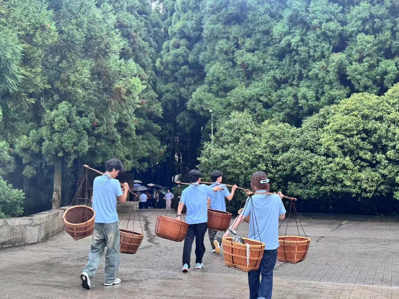 为深度领悟黄洋界精神,实践团身体力行,开展“重走挑粮小道”活动。沿着先辈足迹,成员们头顶淅淅沥沥的小雨、背着扁担、踏上湿滑的石阶,脚步沉重却坚定。在崎岖山路上,真切感受“朱德的扁担”背后的艰辛与担当。雨水落在肩头,汗水湿透衣衫,却让“艰苦奋斗、团结协作”的革命精神,在青年一辈心中扎根生长。